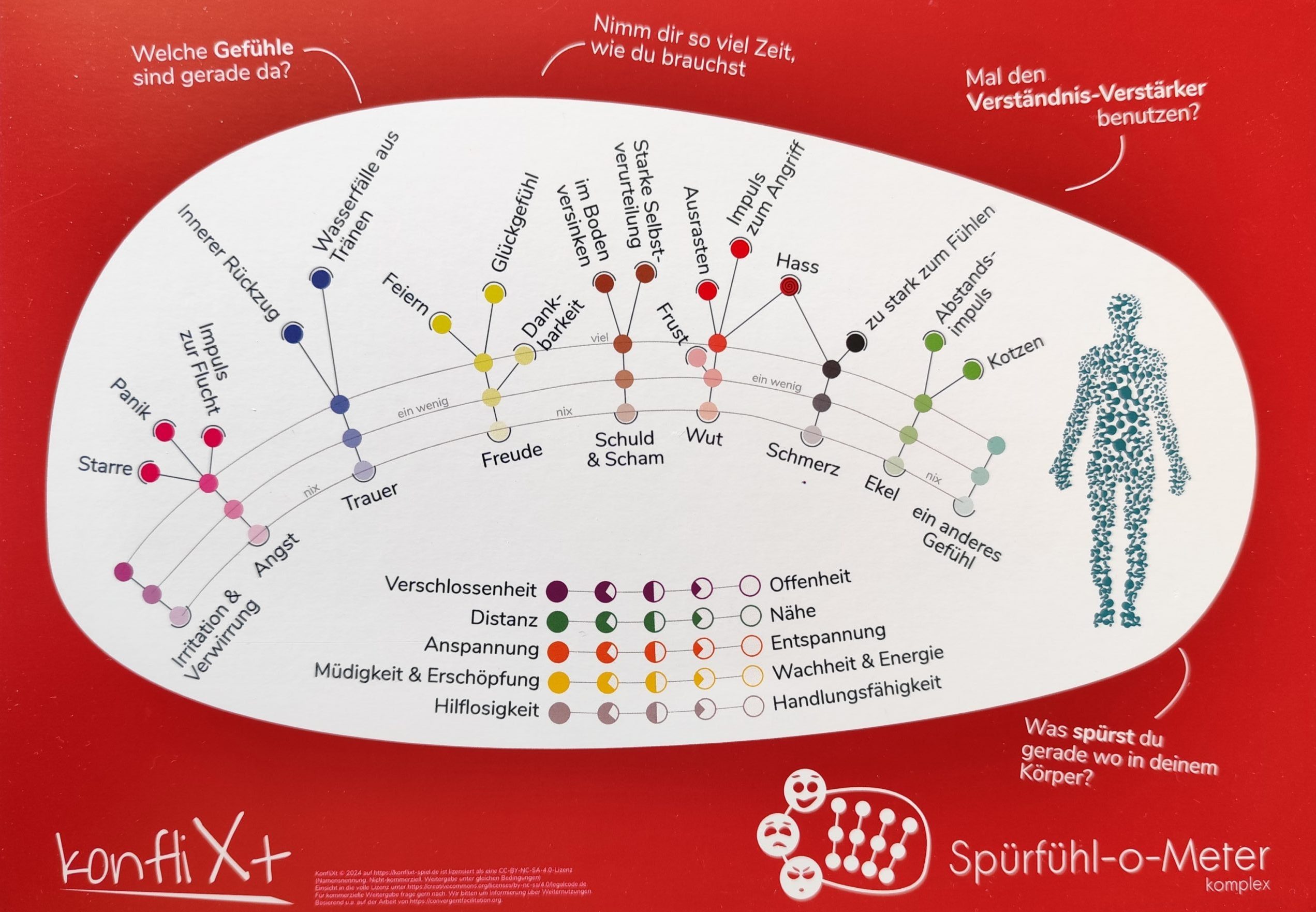 Das Spiel wurde uns kostenlos zur Verfügung gestellt, so wie es für jede/n, die sich interessiert kostenlos im Internet heruntergeladen und dann auf DIN-A4-Blättern ausgedruckt werden kann – mehr Informationen unter www.konflixt-spiel.de. Die beiden Spiele-Entwickler freuen sich über einen freiwilligen Beitrag.