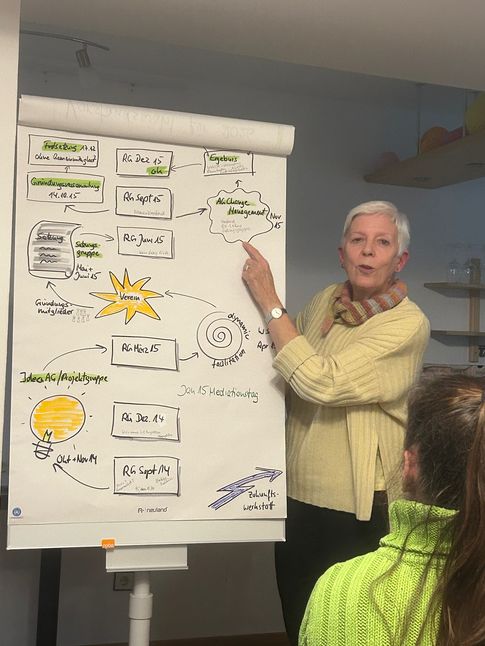 Bewegend waren die Erinnerungen unserer langjährigen Mitglieder. Sie erzählten, wie es zur Gründung von Mediation fördern e.V. kam: von ersten Gesprächen über gemeinsame Visionen bis hin zu den vielen kleinen und großen Schritten, die notwendig sind, um einen Verein aufzubauen. Diese Erzählungen waren weit mehr als nostalgische Rückblicke. Sie machten spürbar, wie viel Herzblut, Mut und Beharrlichkeit in der Entstehung unseres Vereins stecken – und wie sehr dieser Geist uns bis heute prägt.
